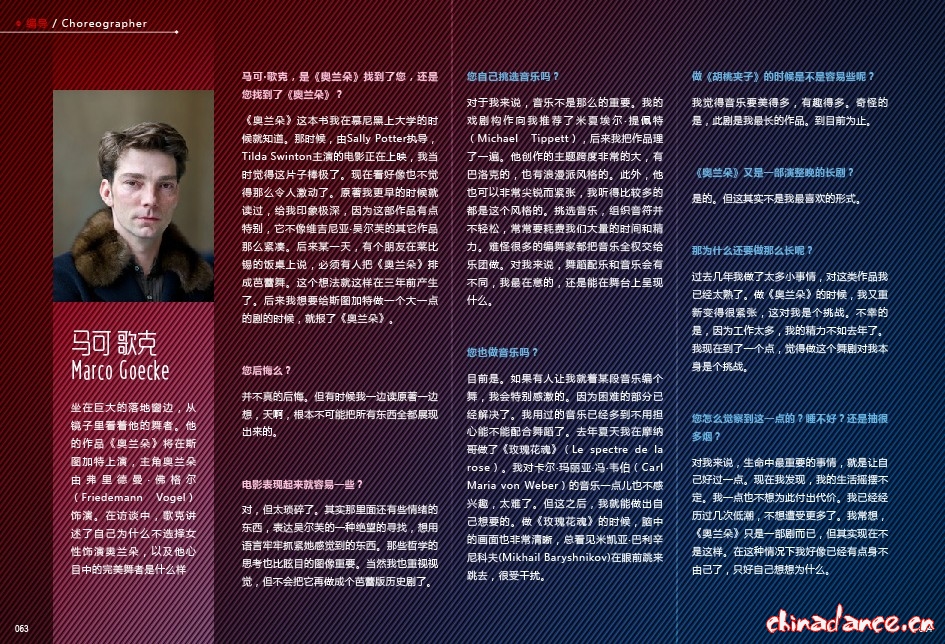 摘要: 《雌雄同體奧蘭朵—訪斯圖加特芭蕾舞團駐團編舞馬可·歌克》